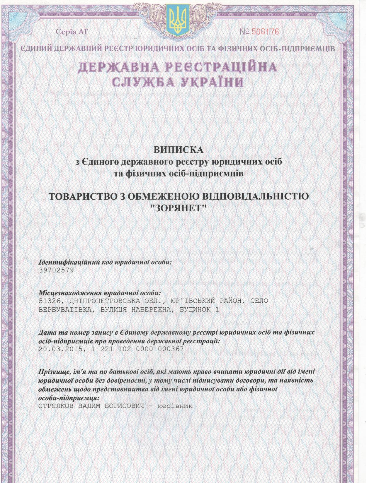 ТОВ "ЗОРЯНЕТ" комунікаційне підприємство, яке працює в селі Вербуватівка з травня 2015 року.